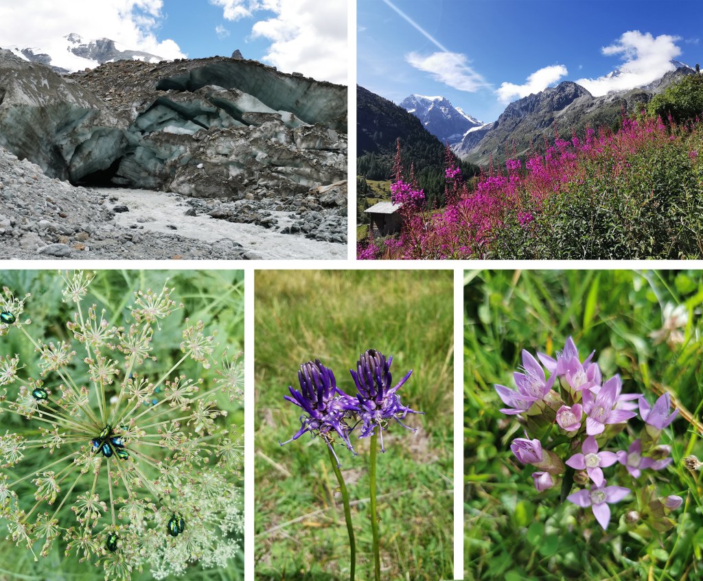 The landscape was beautiful and varied during our holiday, from vineyards to pastures, wide glacial rivers to narrow streets of Geneva. It is sobering to see the pace at which the glaciers are retreating, with dates marked on rocks along the walk up the valley to meet the ice of years gone by. The flowers were stunning and in abundance lower down the mountain passes. We were fortunate with good weather during our time in the mountains so on one day we were able to climb to nearly 3000 metres and lunch at a refuge hut before a rather long decent including steep drops, rickety bridges and large staples to hold on to – via ferrata – some rather scary!