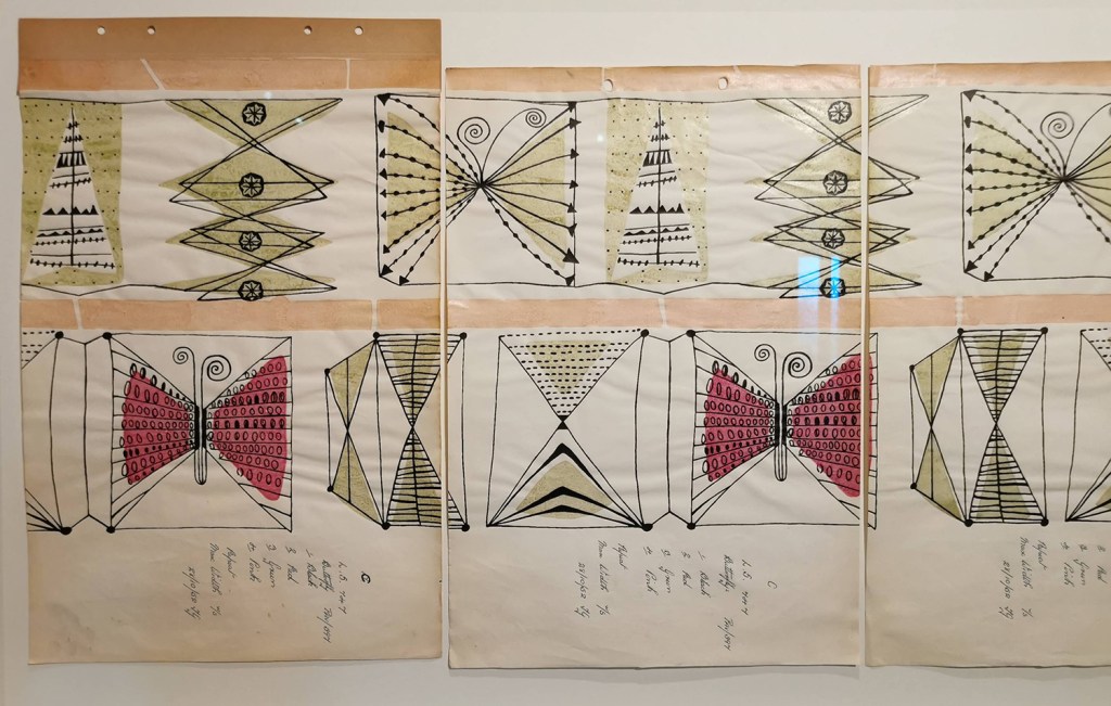 The introductory video for the exhibition gave an insight to the role of women at Liberty with old photographs and recent interviews. I thoroughly enjoyed seeing old favourites throughout the exhibition, with works by Sonia Delaunay, Althea McNish, Jacqueline Groag and Susan Collier & Sarah Campbell as well as being introduced to names I wasn’t aware of, including Mrs Stoneley and Winifred Mold. I hadn’t realised Lucienne Day only designed one design (Fritillary) for Liberty, with it being agreed she would design for Heals while Robert Stewart would design for Liberty!