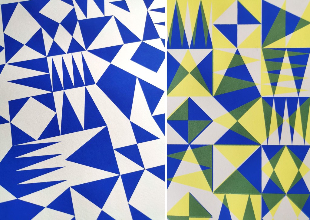 I am really pleased to have had two of my most recent works on paper selected to be included in the Print Cromerexhibition this summer, with the Private View on 19th July. This new body of work has been developed as part of my academic practice at Norwich University of the Arts where I have been exploring pattern structures and repeat blocks. I have explored new pattern iterations by rotating the screens to add additional colours of the same artwork, thereby building greater complexity from limited design information. In an age where digital design and the use of Artificial Intelligence provides limitless opportunities, I want to explore the fundamentals of pattern creation to generate new possibilities that are led by the designer, ensuring the creative path is transparent.