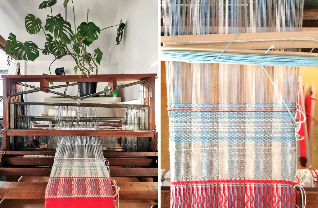 With a newly sorted studio space I noticed the sun was streaming in through the windows and on to the loom, so I made time last weekend to get back to my warp and weft threads. I am using the process a bit like drawing as I create marks and rhythms through textures and colour. While I’m looking forward to being able to see the entire warp woven, it’s more about the process of weaving that I’m really enjoying, and in some ways I don’t want the length to end… that’s my excuse anyway!