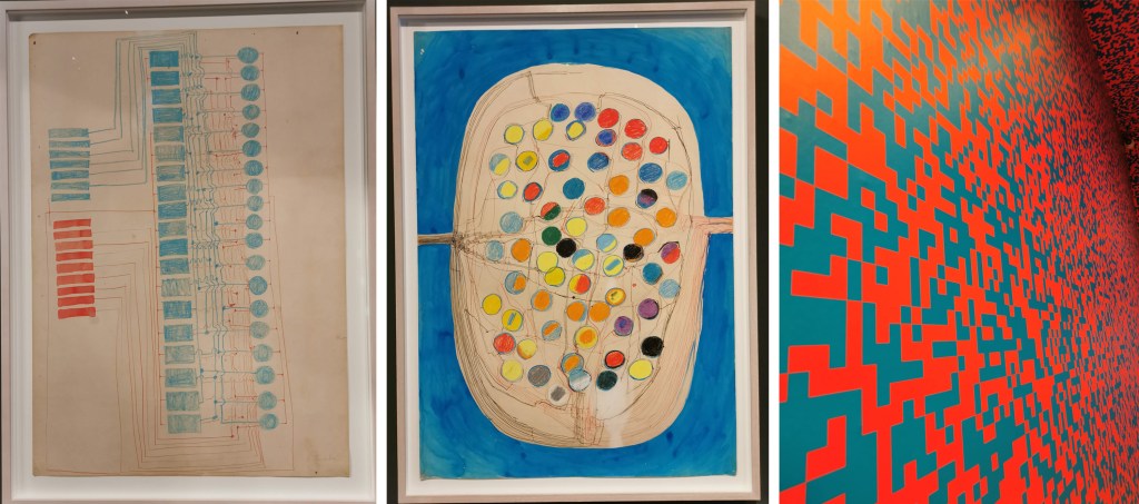 I visited the Electric Dreams exhibition on at Tate Modern, London, until 1st June 2025 and thoroughly enjoyed the exhibition that ranged from 2D artworks, sound, kinetic sculpture, light projections and installations, featuring international artists and groups. Mathematical systems and rules, machine-controlled movement as well as material and pattern play resulted in a fascinating show I thoroughly recommend.