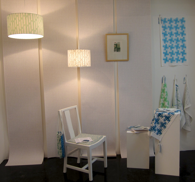 My ‘Plot to Plate’ show is up at Birmingham’s Mailbox as part of Idea Birmingham’s Design Expo running from 15th – 22nd June 2012. It has been a really good experience in light of new and exciting ventures happening in the next few months. The exhibition features wallpaper and hand-printed textile lampshades in order to compliment the textile and paper products in the collection.