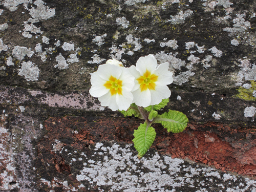 With this in mind I do like to see subversive and anarchic challenges from nature, and nature trying to make its mark where it shouldn’t. Like graffiti on the wrong walls; art in a gallery, vandalism on the streets, plants do sometimes have their own agenda. I found this beautiful plant surviving, flourishing even, in the mortar of a very old wall in Ledbury. It made me laugh. It wasn’t the usual ivy or buddleia, but a beautiful primula, proud as punch of its achievements. Okay, so the leaves are rather small relative to the flower heads but I couldnt help feeling rather pleased for it too.