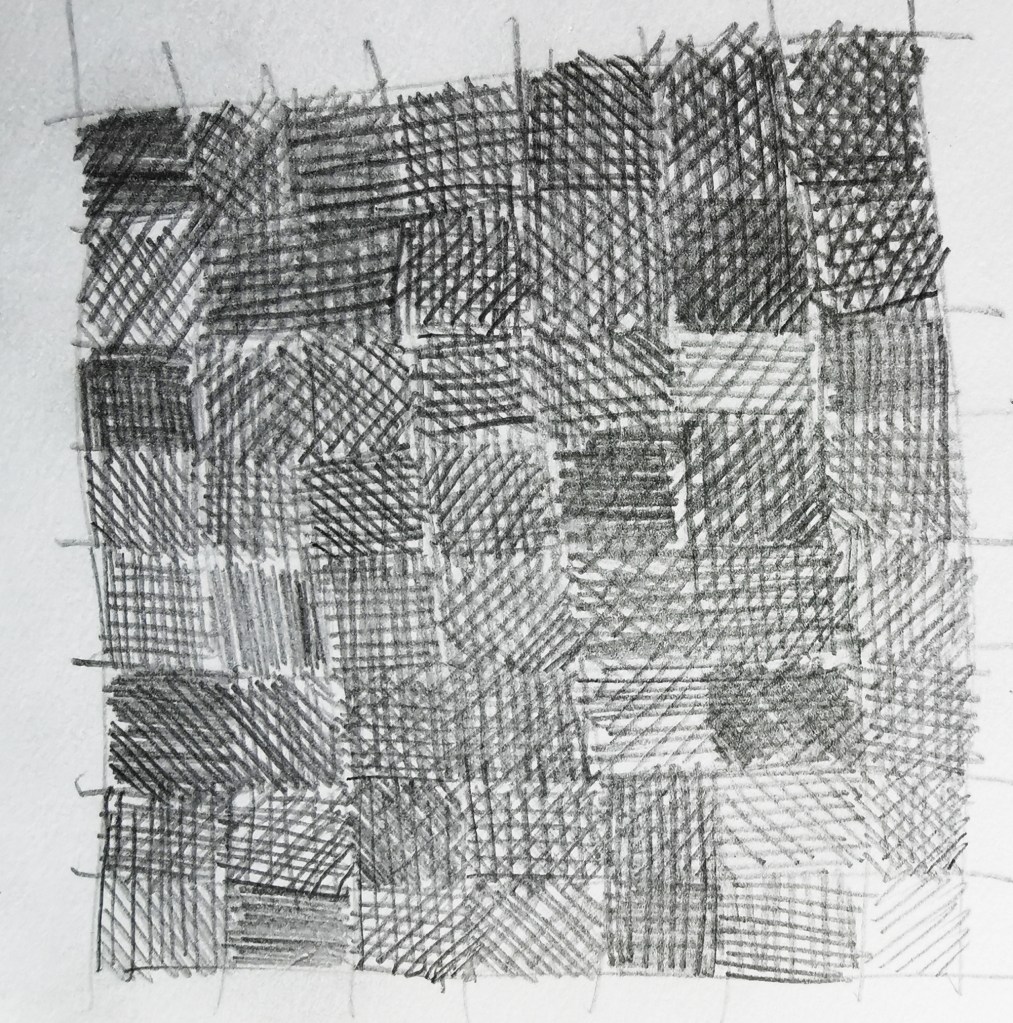 I enjoy the simplicity of paper and pencil in a world where so much of my time is spent in front of a screen. The physical process of drawing; the feel of the friction between graphite and paper, the sounds created by the rhythmic gestures, are vital to the experience. Satisfaction comes from a page of evolving rhythm and more pattern potential. We know there is seduction in the multiple; the repetition of tins on a supermarket shelf, for example.