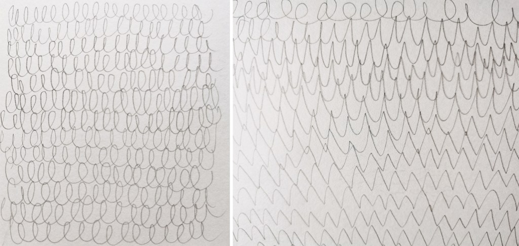 Drawing also creates time to explore rhythms that are playing out more formally in other sketchbooks for other projects. I find it interesting that certain motifs appear in the margins of my notebooks time and time again, made while my mind is occupied. Often those shapes are geometric, but sometimes the circle dominates, at other times, squares. Regularly they link to designs I’m working on and resolving somewhere else, subconsciously seeking solutions.