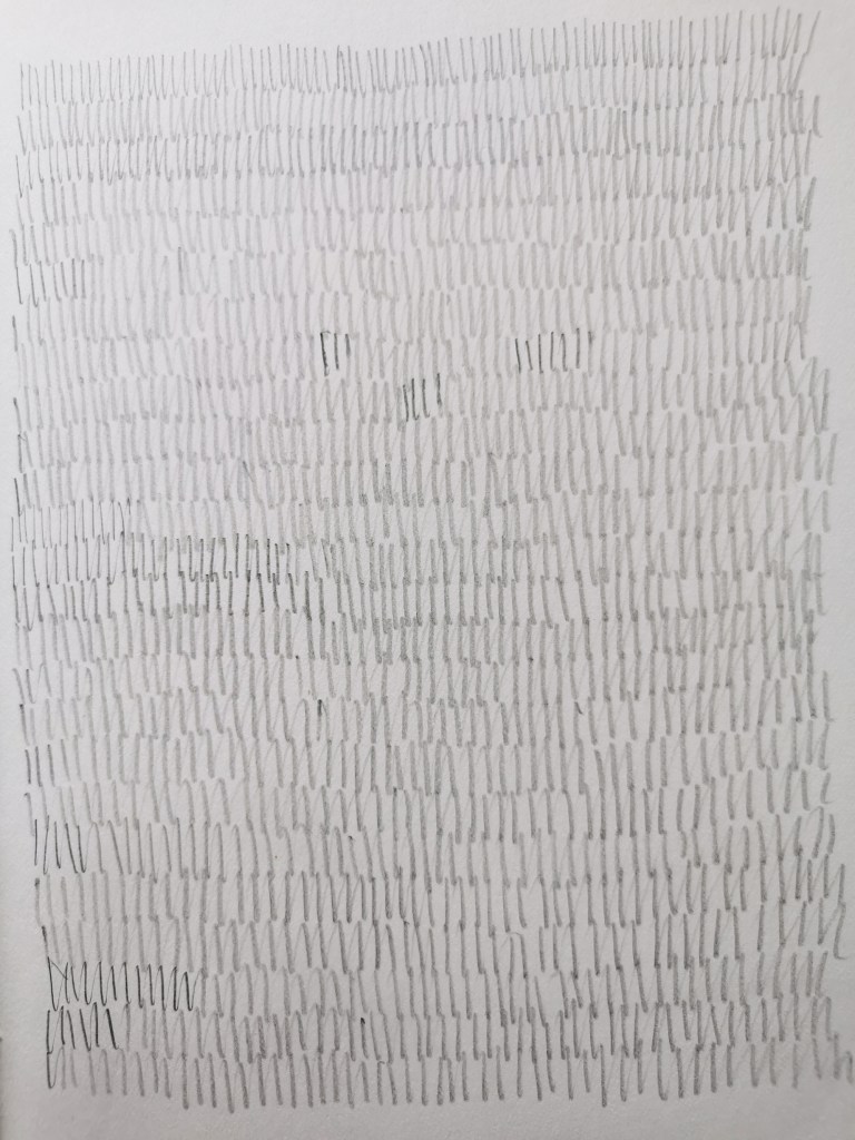 I’m often juggling lots of tasks in my head, but when my mind is busy I can find focus and space to think within and around the process of drawing. The time occupied by my hand drawing gives my head some freedom to work things through. Distraction, mindfulness, process-led, thinking time…